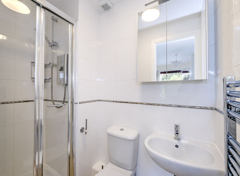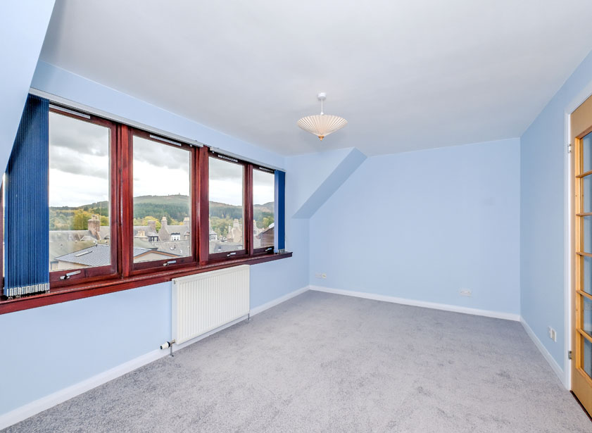 Returning to the main entrance hallway on the ground floor, a second staircase ascends to the upper floor hallway with a hatch to the attic. Off the upper landing is the spacious south facing lounge which is ideally situated for full appreciation of the stunning views on offer at this property. Also on the upper floor is the principal bedroom. Benefitting from fitted storage, the principal bedroom also boasts a modern en-suite shower room with shower enclosure, wash hand basin, illuminated wall mounted cabinet, heated towel rail and extractor fan.