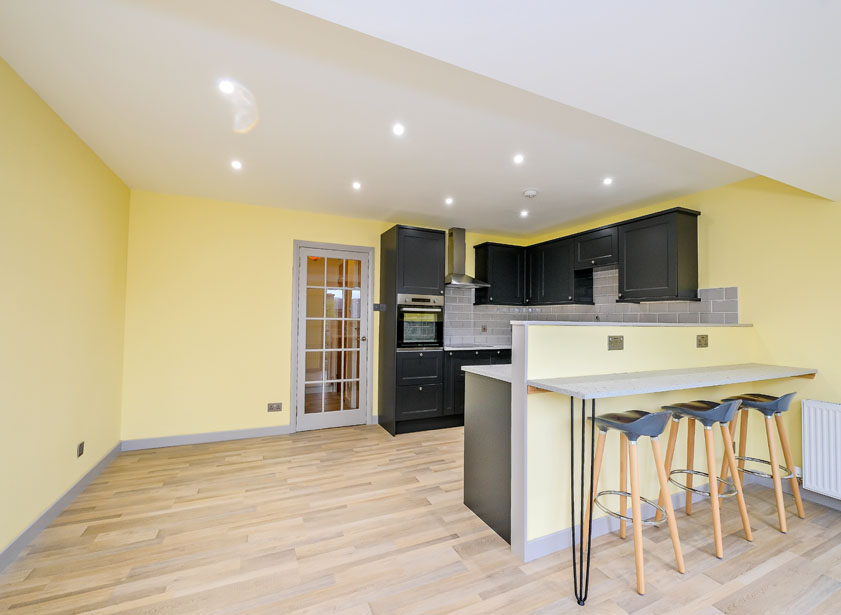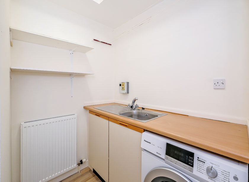 There are two staircases off the main hallway, one leading to the upper floor and the other to the lower ground floor. The lower ground floor level comprises a modern, open plan dining kitchen which is fitted with a range of matte grey base and wall units incorporating a halogen hob with extractor fan above, oven, dishwasher, fridge and freezer. The room boasts a breakfast bar and also has ample space for a table and chairs. Two doors lead from the dining kitchen out to the exclusive south facing garden with external power socket. Adjacent to the dining kitchen is a separate utility room with base units providing storage and incorporating a sink, work top and space for a free-standing washing machine. The lower ground floor accommodation is completed with a WC cloakroom and a fitted under stair cupboard.