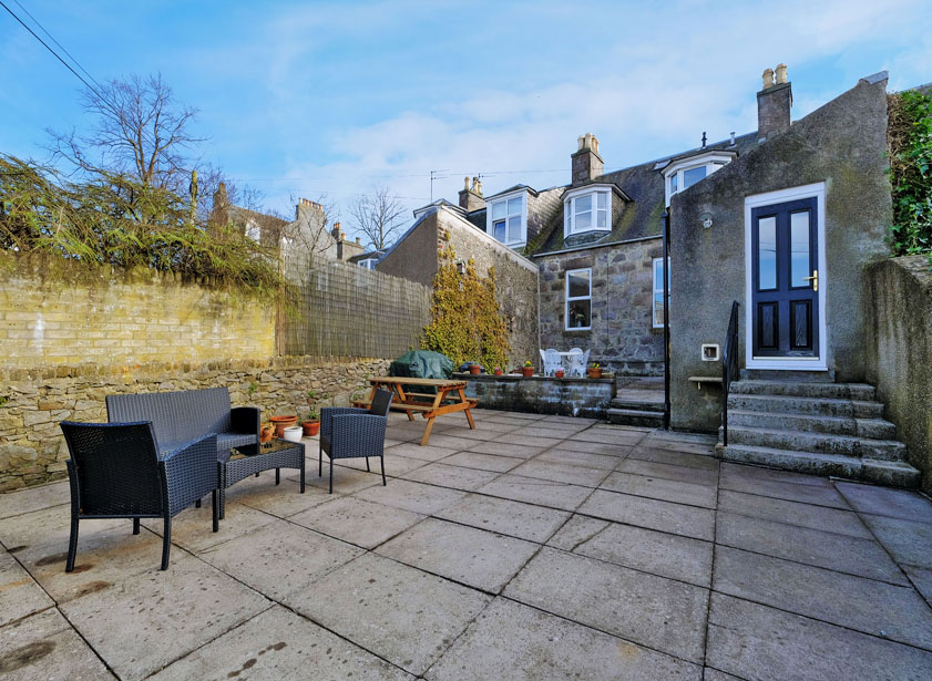 A paved pathway leads to the entrance door. Bordered by granite walls and beech hedging, the front garden features attractive and well stocked seasonal borders, with a variety of small mature trees and shrubs. The generously proportioned rear garden offers versatile zones so as to appeal to the whole family. A large area laid with paving and decorative stone chips is ideal for “al fresco” dining and summer barbeques. The remainder of the garden is laid to lawn with a border of ornamental trees, while a gravelled pathway leads down to a timber gate which allows access to the exclusive parking area. A sought after commodity in the city centre, there is ample parking available for a number of vehicles and is accessible from Thomson Street.