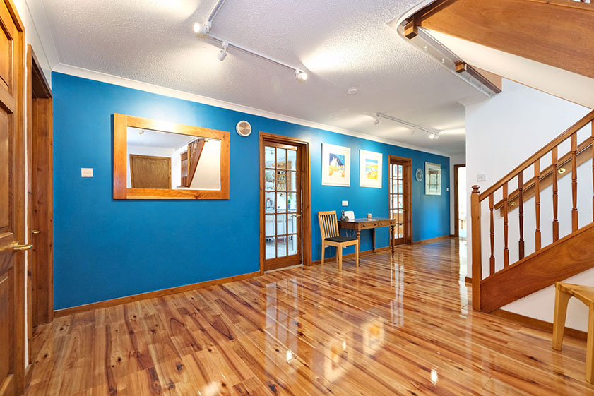 Enter Eleanburn via the partially glazed door to the vestibule complete with a useful built-in double cupboard. A further door opens into the capacious reception hallway with attractive wood flooring which gives access to all ground floor accommodation. An impressive sweeping carpeted staircase, with wooden balustrade, rises to the upper floor. This area also houses a deep built-in cupboard and a deep under stair cupboard. A door provides access to the integrated garage.