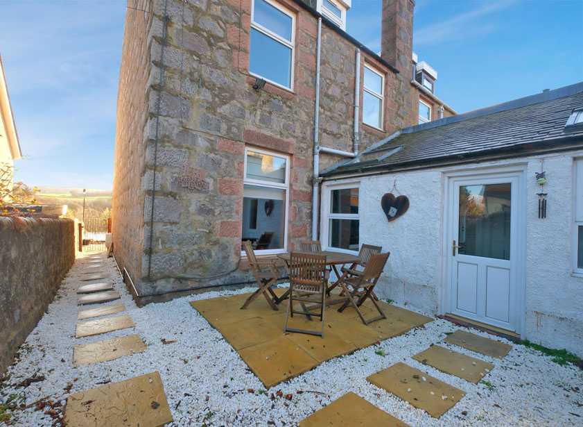 Access to the first floor is via a sweeping staircase with a stunning stained-glass window. On this level there are three double bedrooms all with built in storage. Two of the bedrooms benefit from uninterrupted views over the surrounding countryside towards the River Dee and the historic Shakkin Briggie.