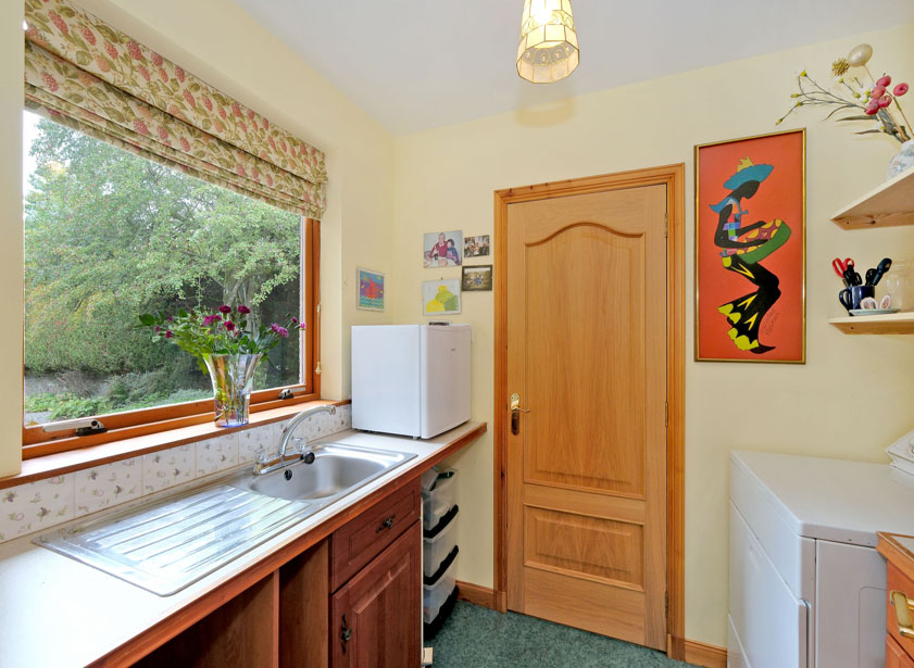 A spacious utility room is conveniently positioned adjacent to the dining kitchen. It benefits from storage, a work surface, a sink and draining board, there is space for free standing white goods. The utility room leads to a spacious rear vestibule with fitted storage concealing the boiler and providing hanging and floor storage. A door from the rear vestibule gives access to the rear garden and parking area.