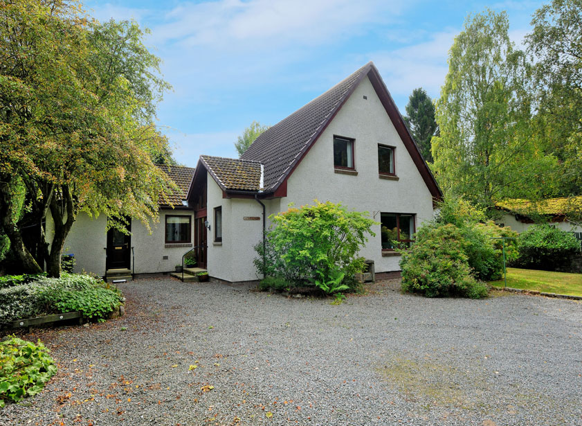 Travelling on the A93 through the village of Aboyne pass the petrol station on the right and proceed along this road then take the first right into Golf Road. Continue to the top of this road and turn left before the entrance to Aboyne Golf Club. Proceed along the road where Cumbrae Beag is located on the left-hand side as indicated by our Mackinnons For Sale Board.