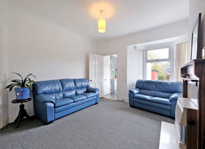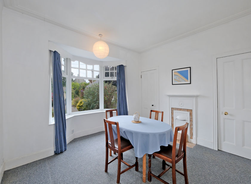 A further bright room with bay window overlooking the front of the property is currently used as a dining room. An original cast iron fireplace with tiled hearth houses an open fire. Ample space for a range of dining furniture.