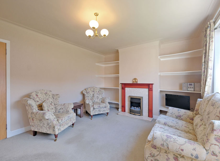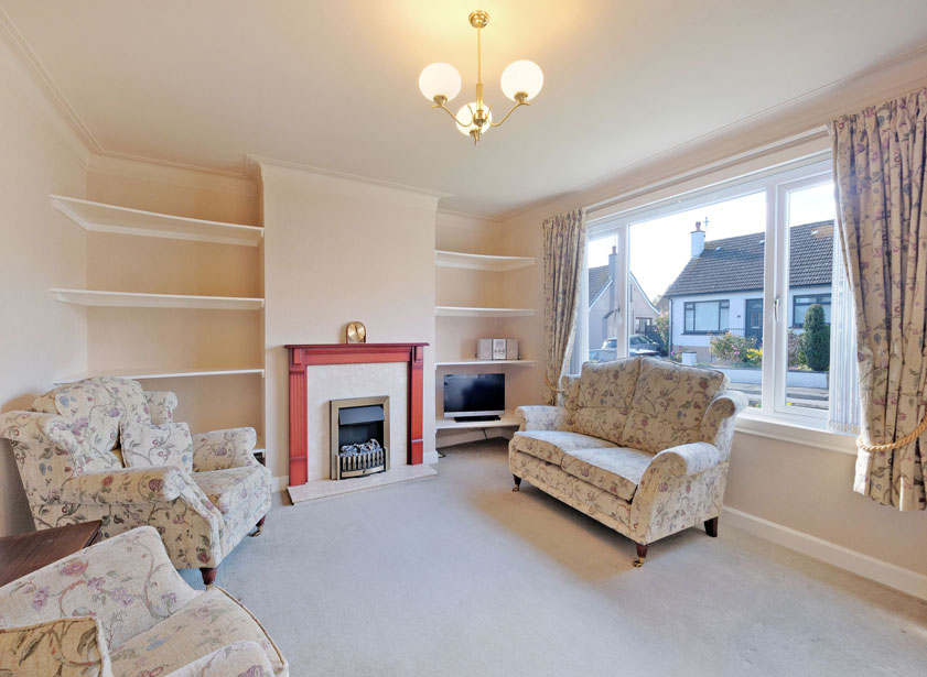 The lounge has a large picture window overlooking the front garden and a particular feature is the electric coal effect fire with marble hearth and wooden surround. Inbuilt shelving in alcoves provide storage.
