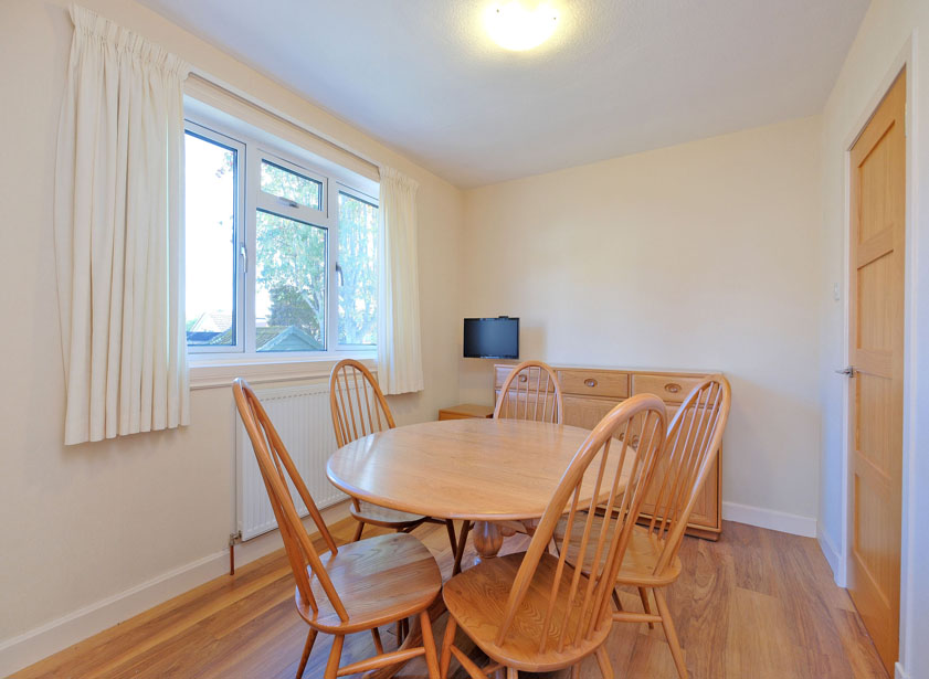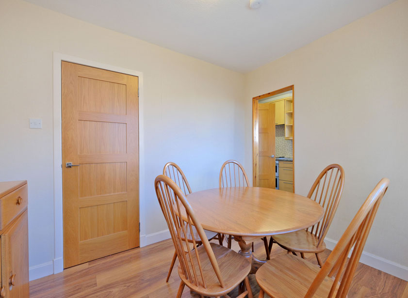 The dining room with ample space for a range of furnishings has a door leading into the hall and another leading into the kitchen. Window overlooking the rear garden.