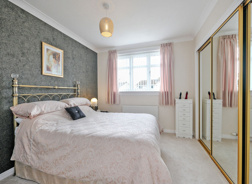 A well-proportioned main double bedroom situated to the rear of the property benefits from extensive fitted wardrobes providing ample shelf and hanging facilities. This bright room also offers ample space for a range of free standing furniture.