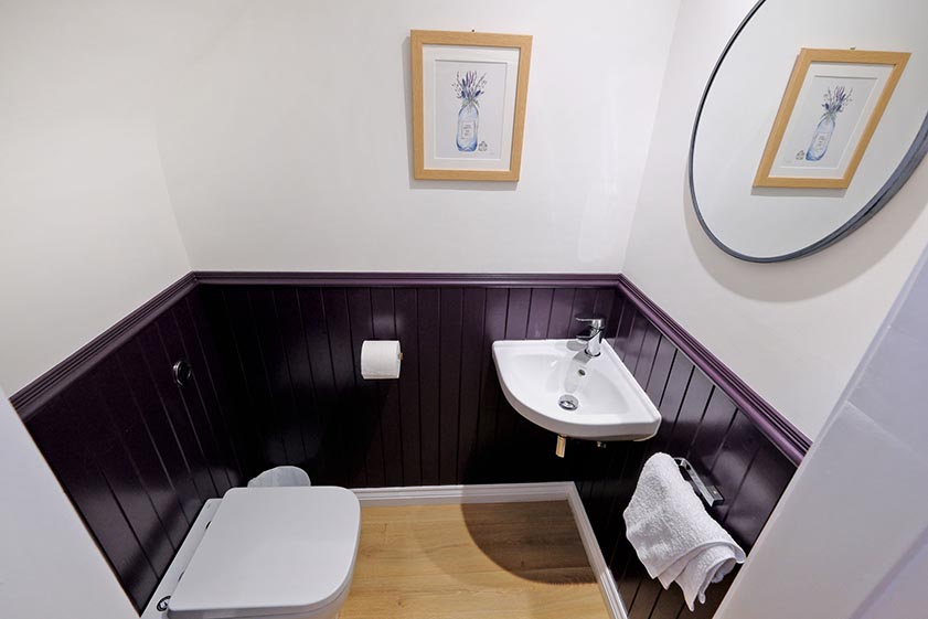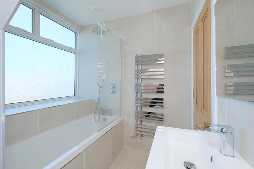 Completing the living accommodation is the contemporary family bathroom. Attractively tiled around the three piece suite, there is a wash hand basin with vanity storage, floating WC with concealed cistern and a bath with a rain effect shower head and wand overhead. A large window with decorative etching provides lots of natural light, with further features including a panel mirror, chrome towel rail and ceiling spotlights.