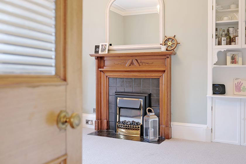 A partially glazed panelled door from the reception hall leads into the bright and well proportioned family room. Overlooking the rear garden via a large window which allows for lots of natural light, there is an attractive wooden mantelpiece housing an electric fire on a slate hearth. To the side of the fireplace is an alcove featuring decorative display cabinetry, shelving and a half height cupboard.