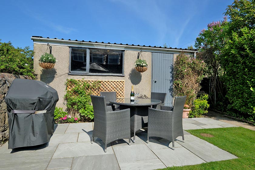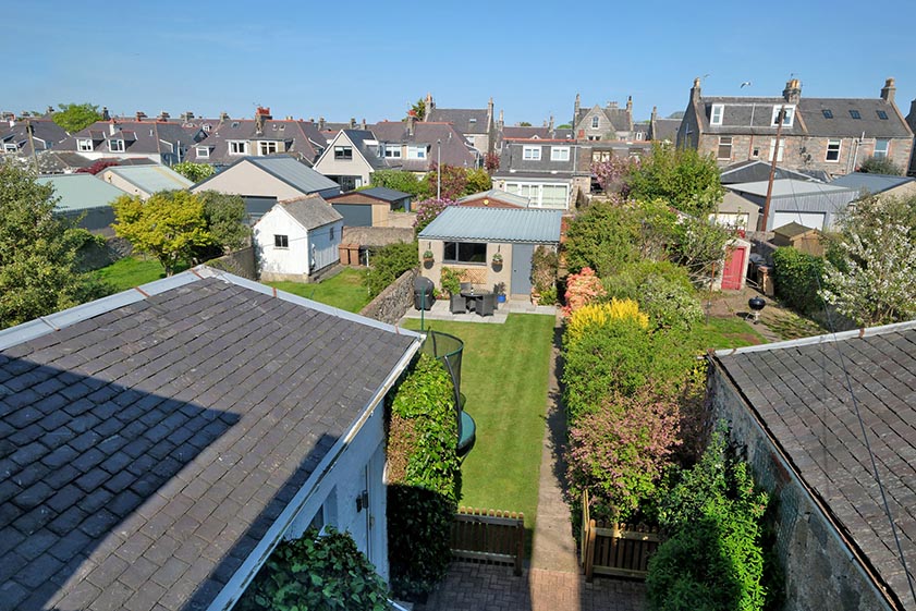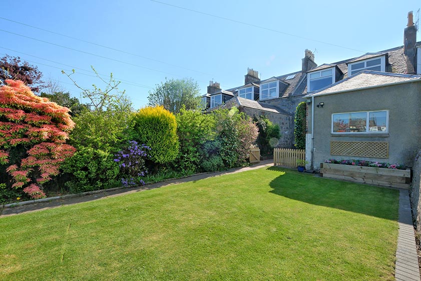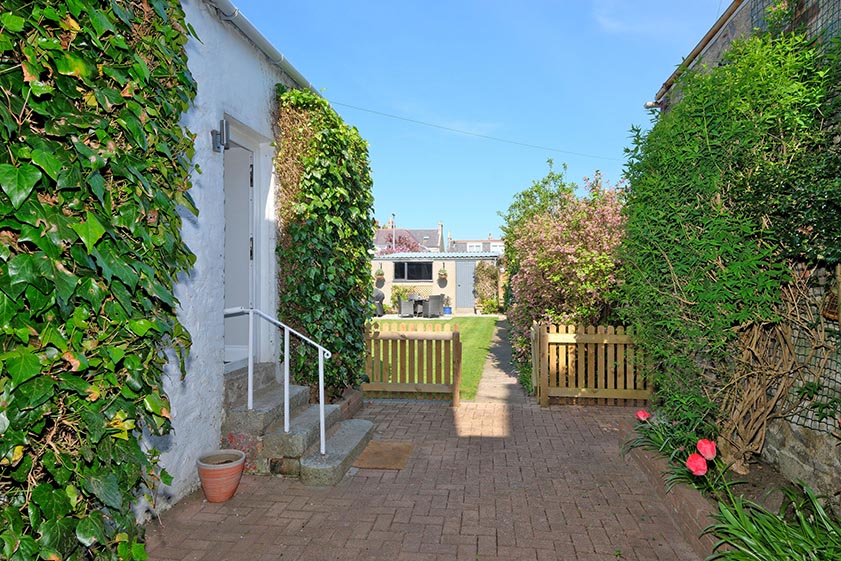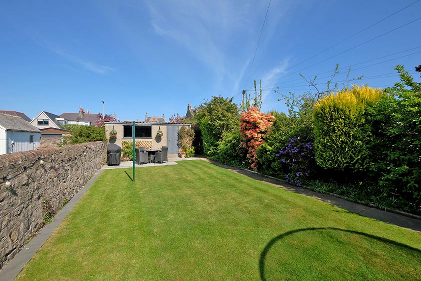 A gate from the courtyard leads into the central section of the garden which is mostly laid to lawn with a well established border providing privacy and seasonal bursts of colour. A paved pathway leads to a gate to the rear lane beyond, as well as an attractive terrace which is perfect for “al fresco” dining. The double garage is accessible from within the rear garden and includes power, light and an electric up and over door.