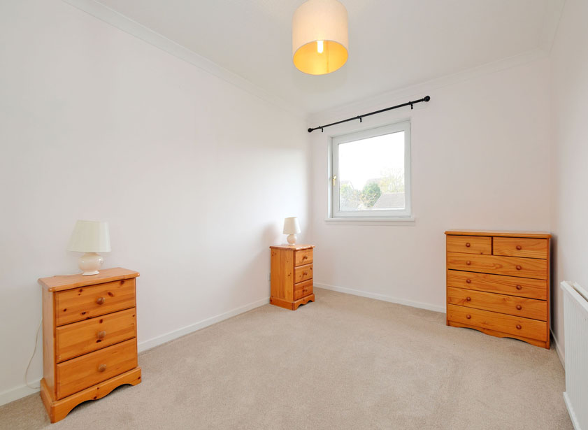 Double bedroom two is a further generously proportioned room of neutral décor and carpeting again overlooking the rear garden, the surrounding hills and the countryside beyond. Fitted wardrobes provide storage and house the gas central heating boiler which was replaced in 2024.