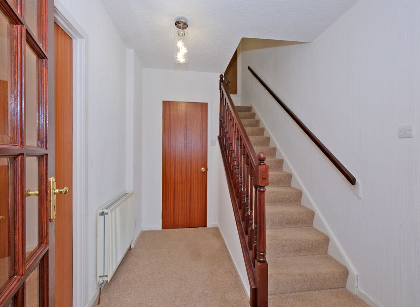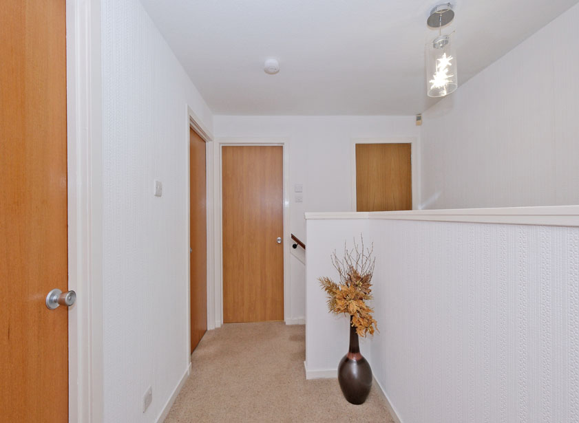 Returning to the hallway, the carpeted staircase provides access to the first floor accommodation. A cupboard at the top of the staircase provides extra storage. A hatch gives access to the partially floored attic space.