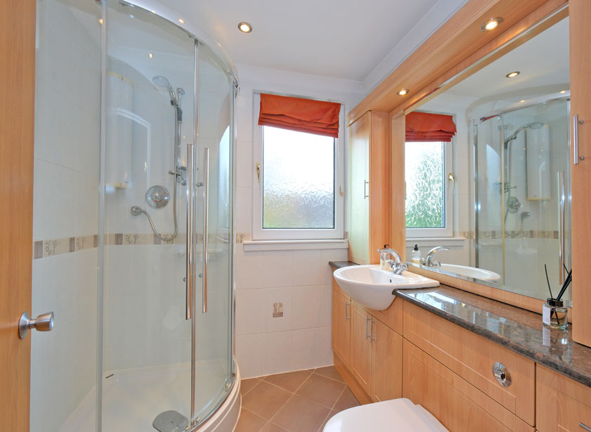 Completing the accommodation is a good sized family shower room fitted with a white two piece suite and separate shower enclosure. The WC and wash hand basin are set into bathroom furniture providing storage and display areas. Tiled floor. Fully tiled elsewhere. Opaque window to the rear.