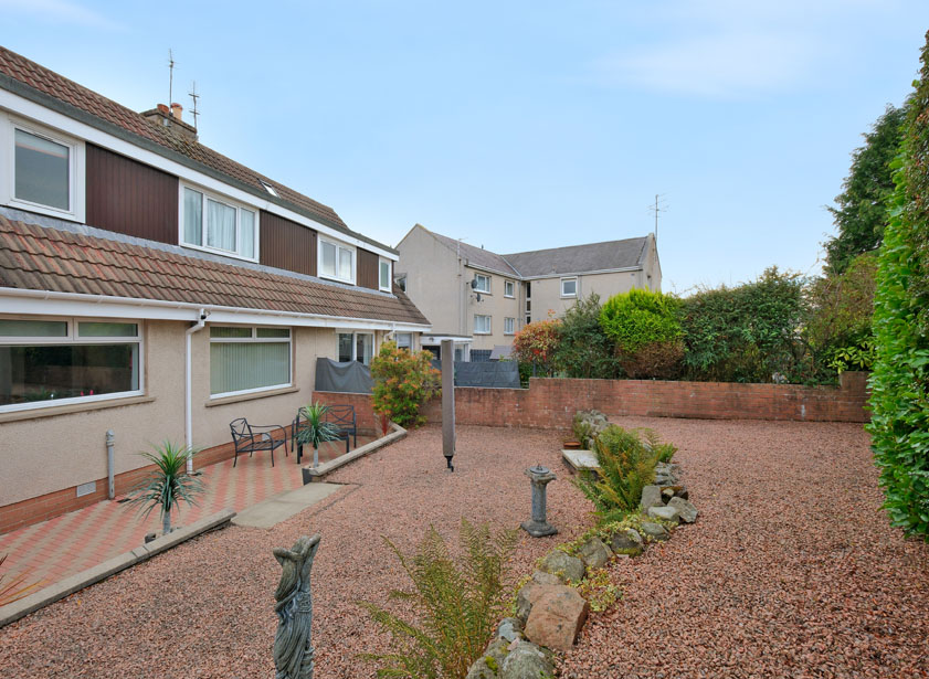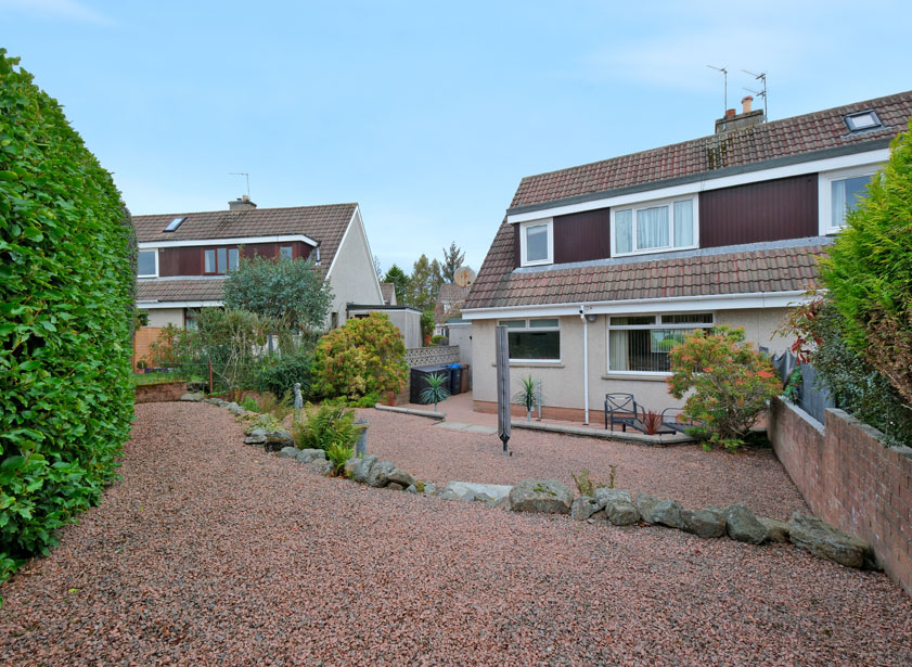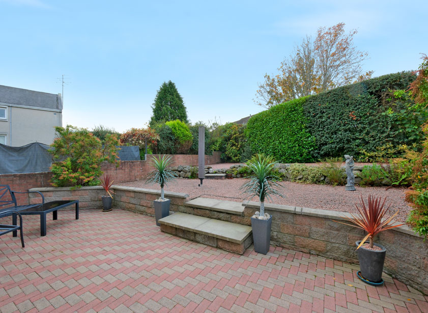 A driveway to the front of the property provides off street parking for multiple cars and allows access to a single garage with electric door which is equipped with power and light. The garage houses the gas central heating boiler, which was new in April 2025, is under a seven year warranty and has the added benefit of the HIVE heating system. Free standing washing machine and tumble dryer which will be included in the sale. A door in the garage leads to the rear garden which is screened by a mature hedge at the rear. A patio area laid in loc bloc, ideal for outdoor entertaining. Raised areas with mature shrubs and laid to stone chips for easy maintenance.