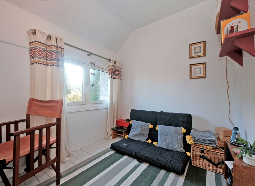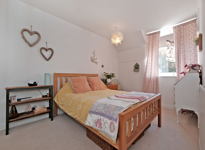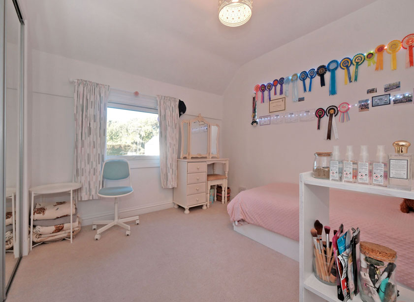 A good sized bedroom situated to the front features a fitted cupboard with shelved storage. This room is currently used as a home office.