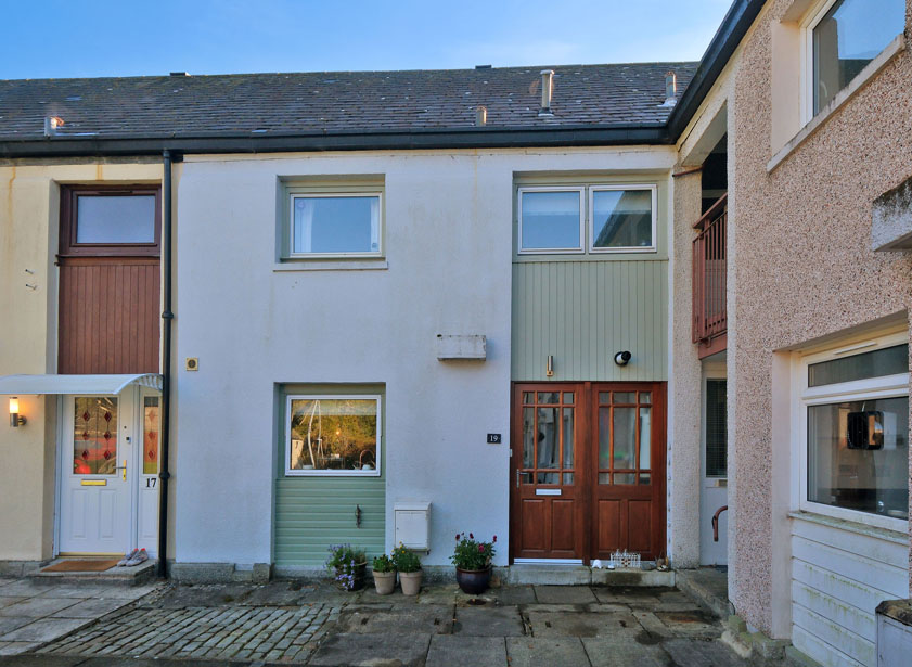 Externally, the property enjoys open views over well maintained communal drying green to the rear and expansive areas of lawn with several mature trees and shrubs to the front which are maintained by the local authority. The central courtyard with ample residents parking at the rear leads to a paved walkway and rear mews entrance. The property boasts an exclusive area of garden to the front with paved terrace and decorative borders stocked with a variety of established shrubs, trees and seasonal plants. Garden shed will remain.