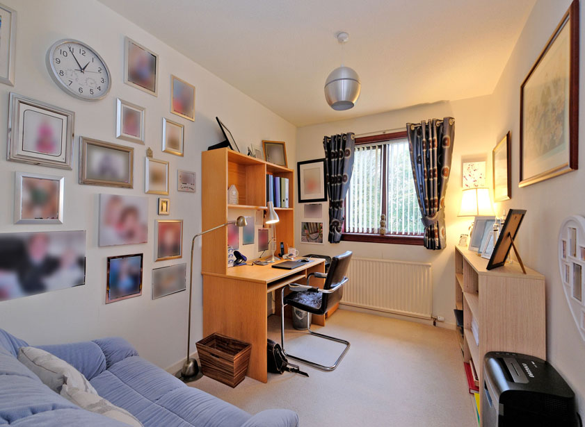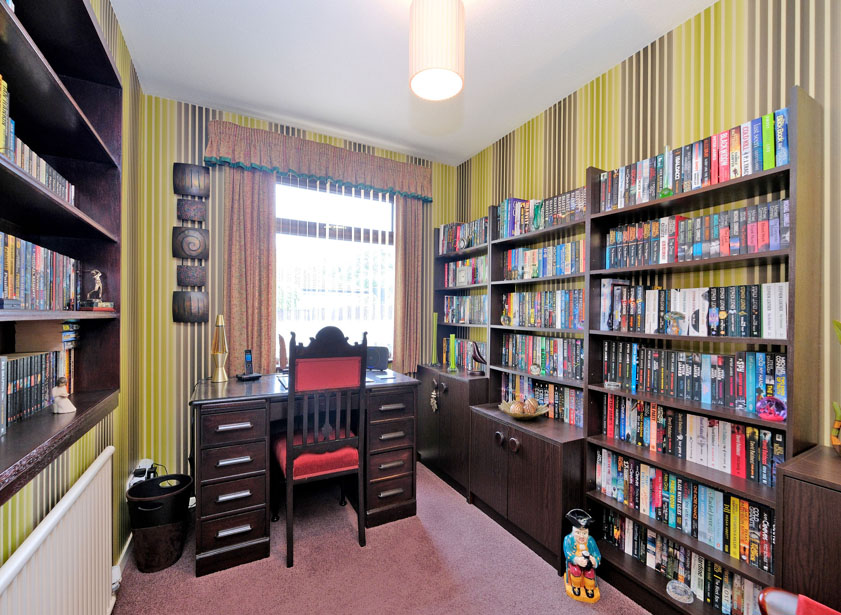 Overlooking the front of the property, a good sized room is currently used as a home office, recessed display shelving/ bookcase to remain. Space for a range of furnishings.