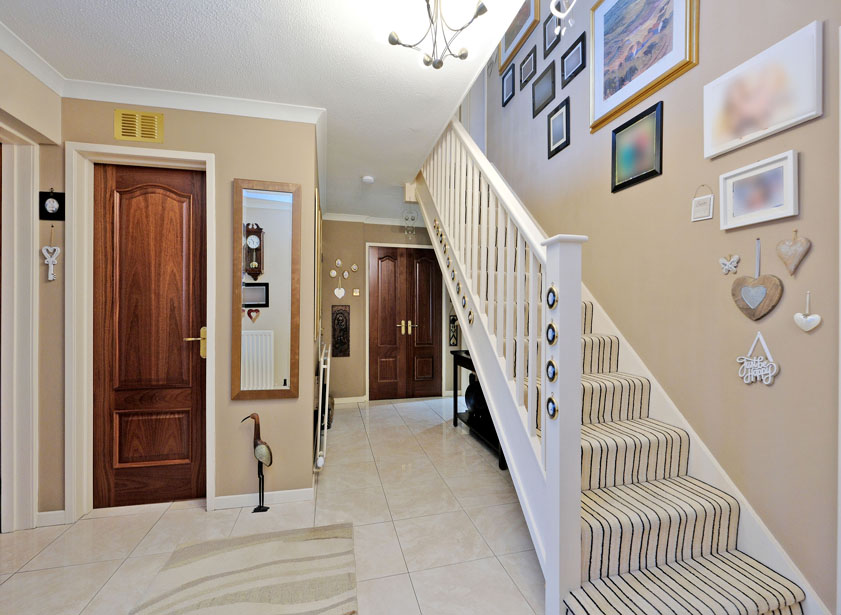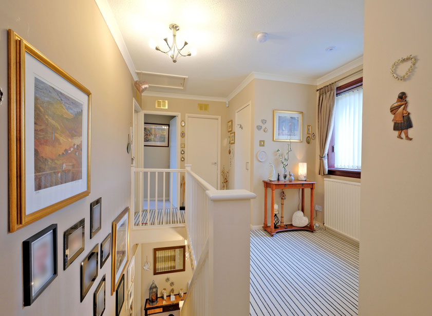 From the reception hall a carpeted staircase with wooden balustrade and banister leads to the galleried upper landing and remaining accommodation. A dormer window to the front allows ample natural light into the area. Double fitted linen cupboard and further storage cupboard provide excellent storage facilities. Hatch to insulated and floored attic space via Ramsay style ladder.