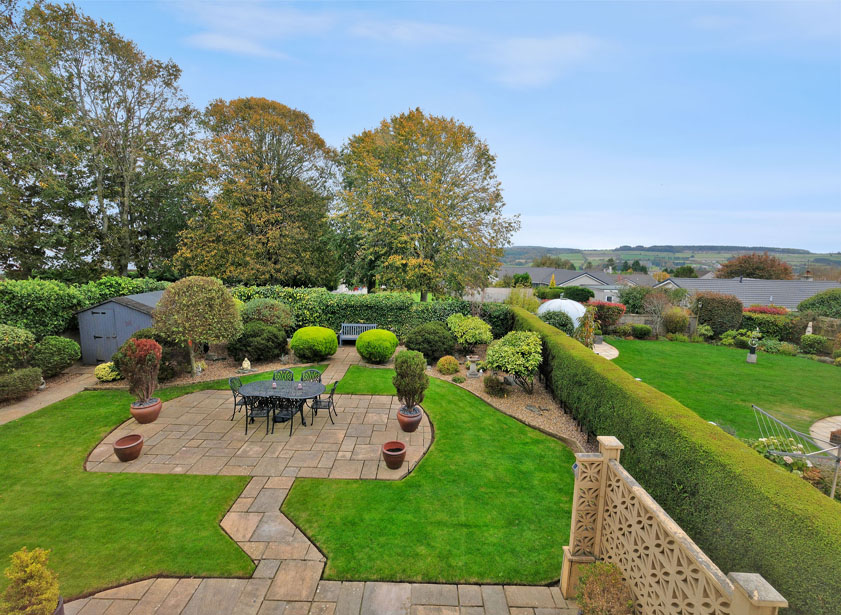 An extensive loc bloc driveway to the front offers ample off road parking and leads to the integral double garage with electric roll top door equipped with power, light, water tap and houses the Central heating boiler. The attractive front garden features an area of lawn with mature borders stocked with a variety of established shrubs and trees. Gated access to either side, leads to the fully enclosed rear garden. Screened by high level stone wall and mature conifer hedging, the beautifully maintained south facing rear garden features an area of lawn with paved paths to good sized sun terraces, ideal for outdoor entertaining. decorative borders are stocked with a variety of established shrubs and trees.