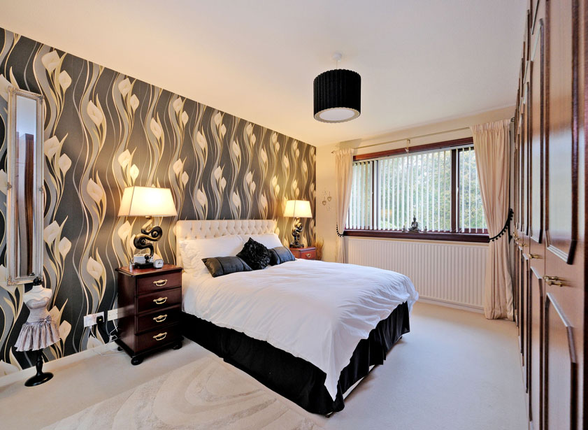 A generous double bedroom situated to the rear of the property boasts superb views over the garden and Dee valley beyond. This room is further enhanced by extensive fitted wardrobes providing excellent shelf and hanging space. Access to a good sized ensuite bathroom, fitted with a modern white suite comprising/c, bath vanity housing twin wash hand basins and a separate fully tiled shower enclosure housing a rain fall shower head. Fully tiled throughout and ceramic tiled floor with under floor heating. Opaque window to the side.