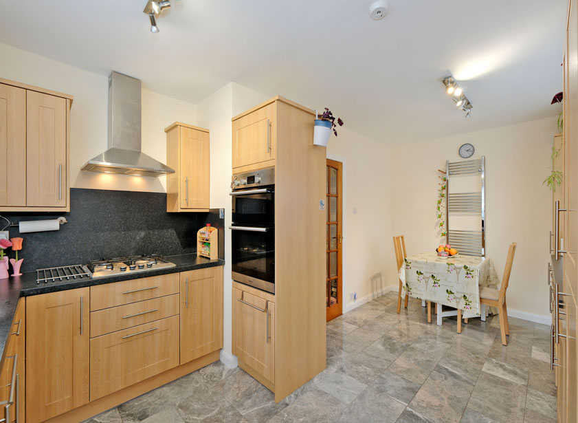 A well-appointed dining kitchen is fitted with a wide range of modern wall and base units with ample roll front work surface and matching splash back. 1.5 bowl stainless steels ink with mixer tap and drainer. Integrated appliances including 4 ring gas hob with extractor canopy, double oven/ grill, dishwasher, fridge/ freezer and washing machine will be included in the sale. Central heating boiler concealed within a wall unit. Ample space for a breakfast table and chairs. Window on two aspects allows a good deal of natural light into the area. Part glazed door to rear courtyard.