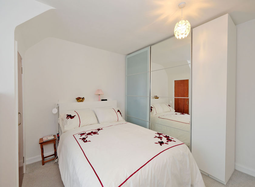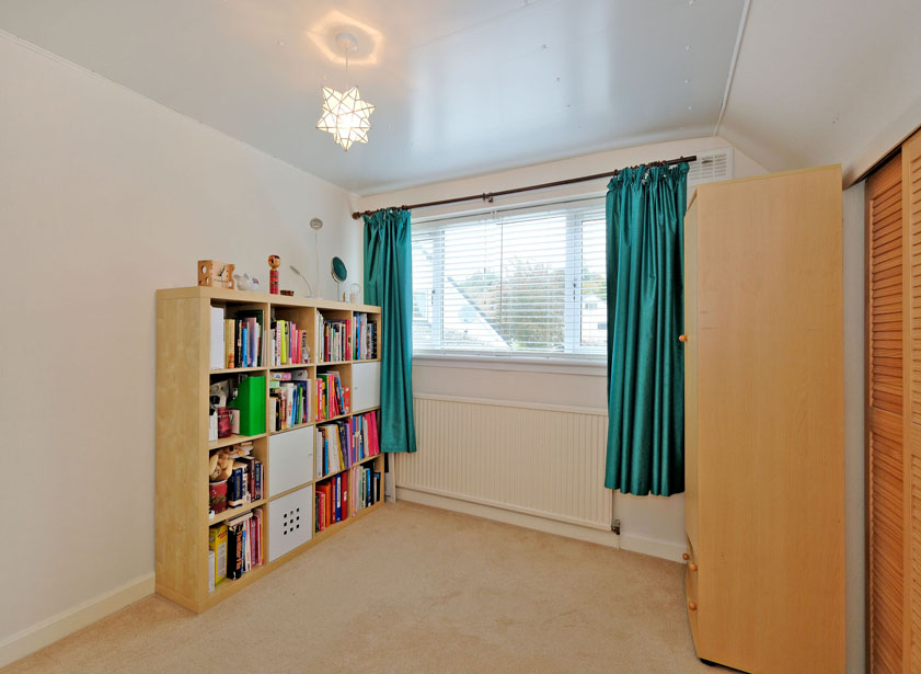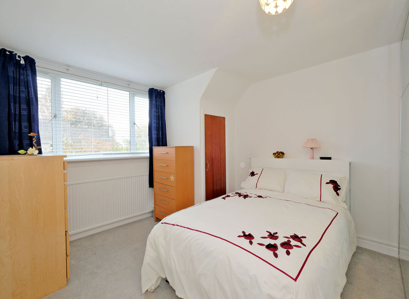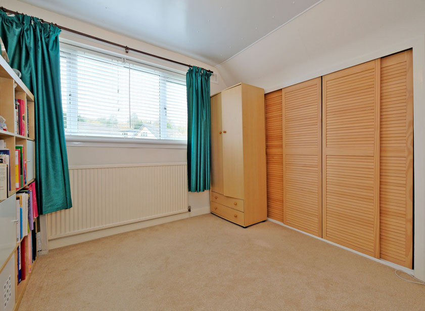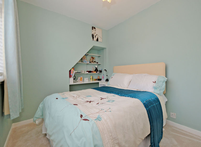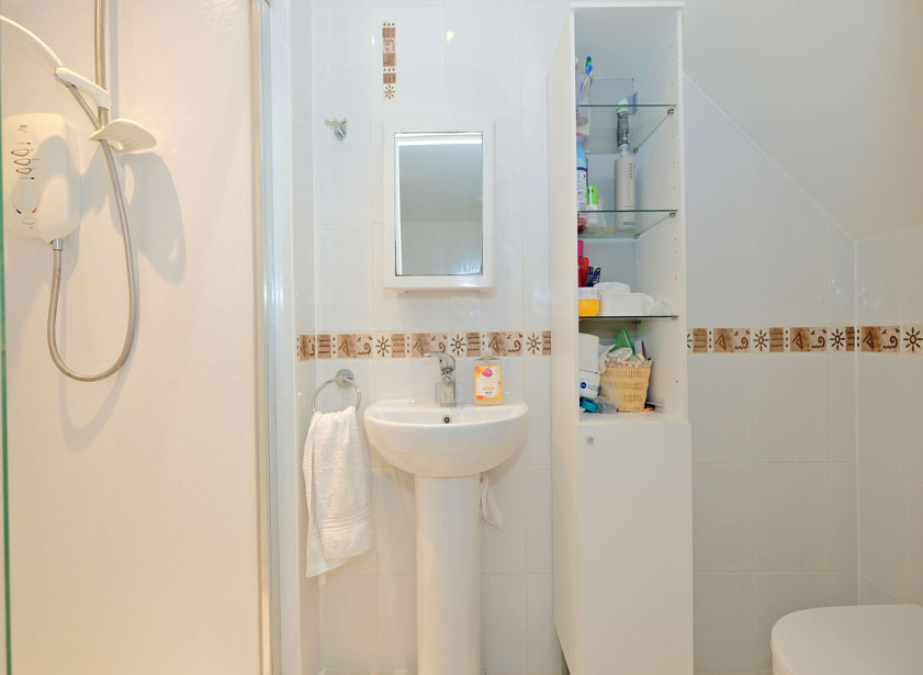 A well-proportioned double bedroom with dormer window to the front benefits from extensive fitted wardrobes and eaves storage facilities. This room is further enhanced by an ensuite shower room fitted with a two-piece suite and aqua lined shower enclosure. Fully tiled throughout and ceramic tiled floor.