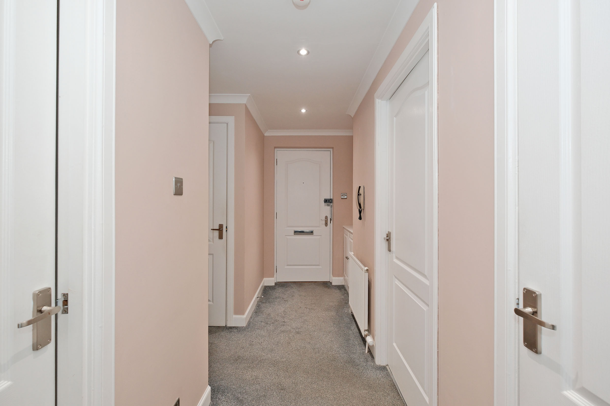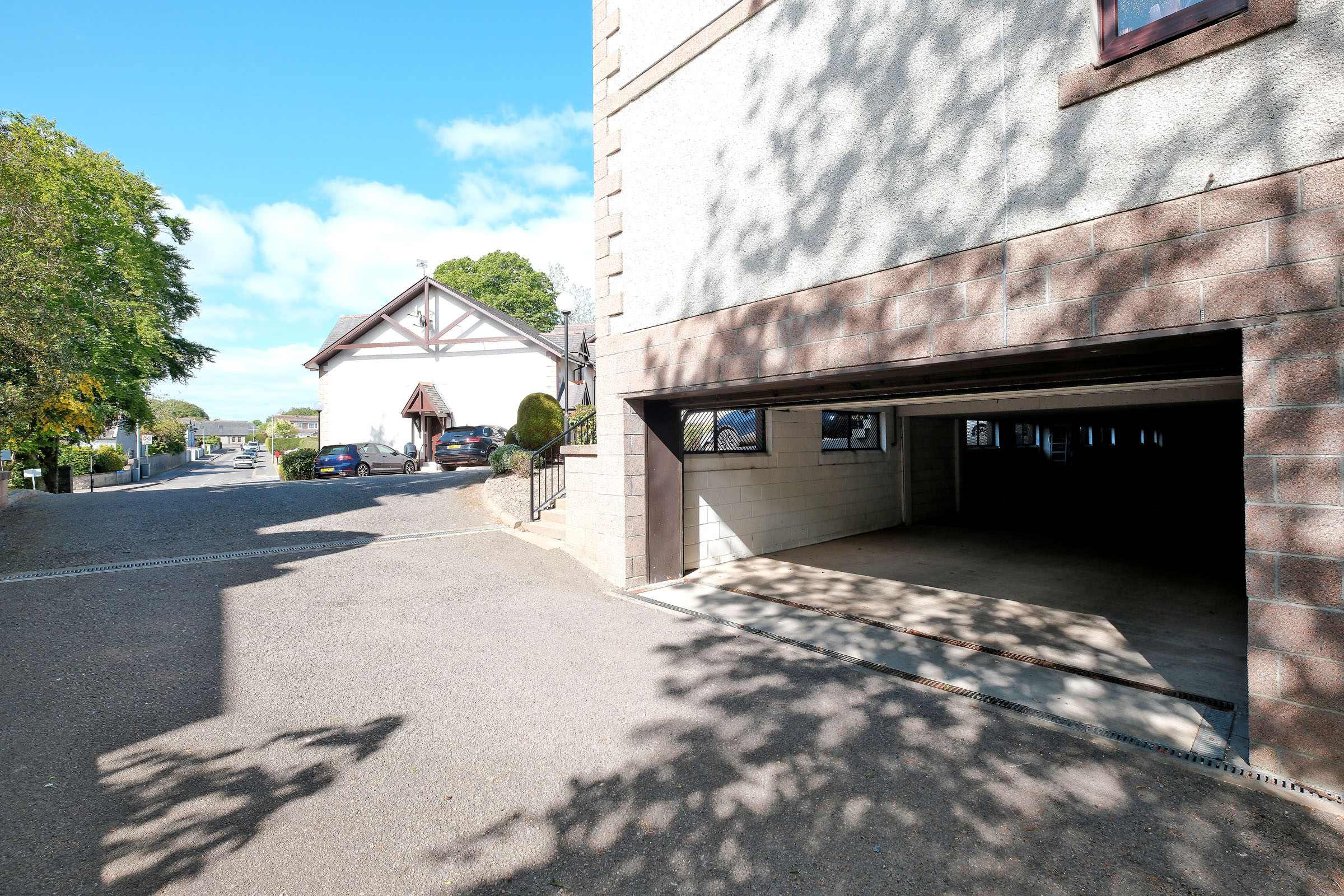 The well-proportioned accommodation comprises, a welcoming reception hallway, exceptionally spacious Lounge / dining area with full height windows overlooking the secluded rear gardens, modern well-appointed dining kitchen with integrated appliances, spacious principal bedroom with en-suite shower room, further double bedroom and refurbished shower room. All room sizes are of generous proportions. Both double Bedrooms benefit from built in wardrobes. There is also a large walk in store in the hall providing excellent storage facilities. The apartment block is well presented and protected by a security entry system. Communal areas and gardens are maintained by a factor service. There is an exclusive car parking space situated in the underbuilding car park which is accessed by an electric up and over door.