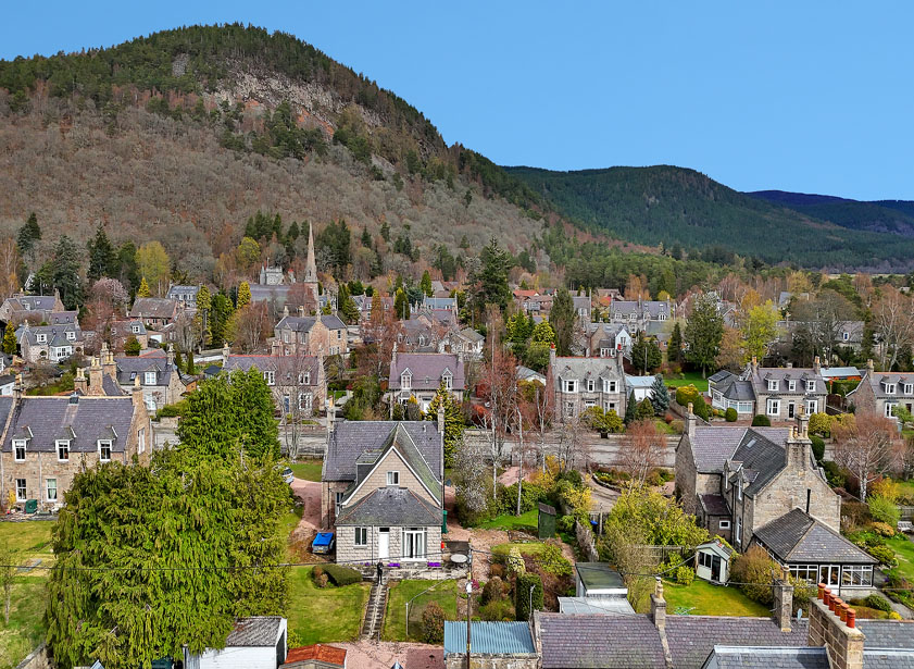 Travelling from Aberdeen to Ballater on the A93, turn right at the T-junction as you enter the village, onto Bridge Street. Continue along the road passing the village green and turn second left onto Viewfield Road. After a short distance turn first right onto Queens Road. Inchgarth is located halfway along the road on the left-hand side as identified by our Mackinnons For Sale sign.