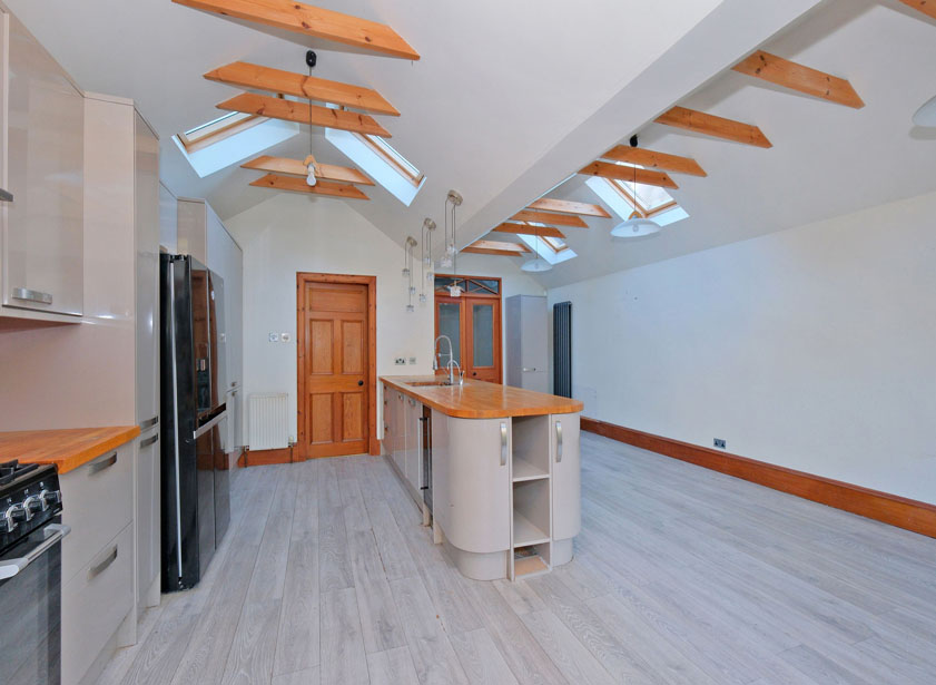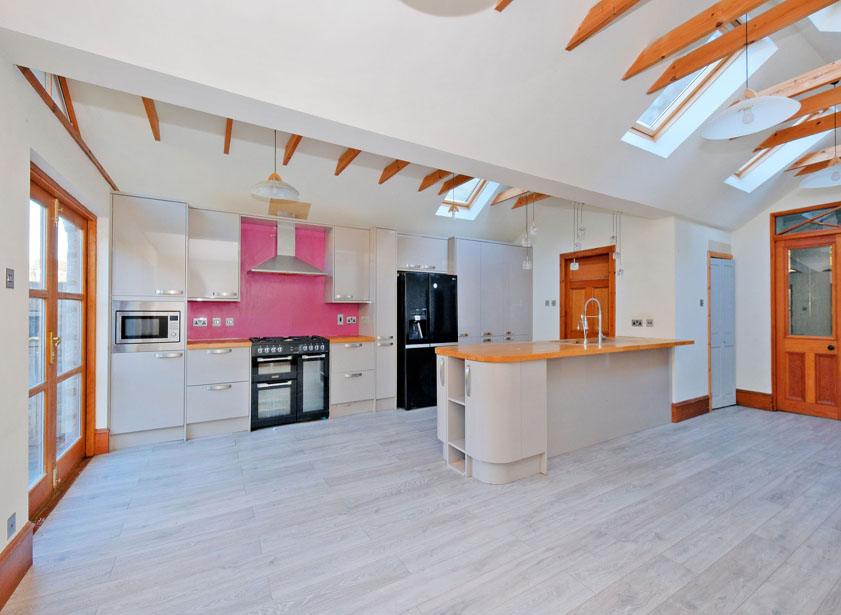 The spacious dining kitchen forms part of a previous extension to the property and truly lies at the heart of the household. Providing excellent accommodation for both dining and relaxation, the dining kitchen benefits from an abundance of natural light from the well appointed skylights, as well as the windows and doors facing the rear garden.