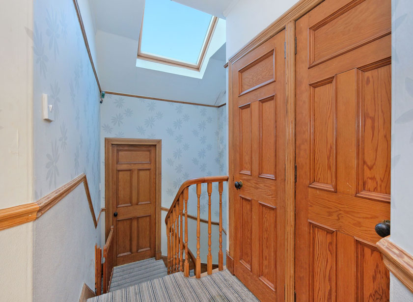 Returning to the landing, a panelled door reveals a further carpeted staircase which leads up to the attic accommodation. Fully carpeted with a range of fitted and eaves storage available, twin skylights provide plenty of natural light.