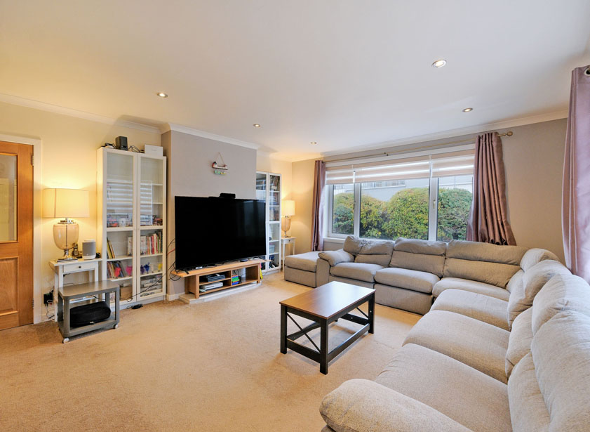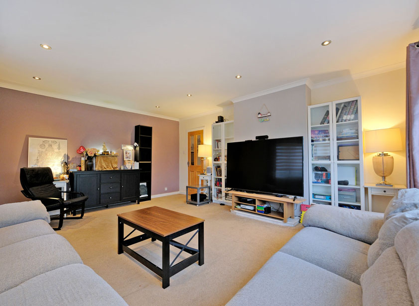 Enjoying dual aspect views over the property frontage, the spacious lounge is fully carpeted and of pleasant decoration with ceiling spotlights.