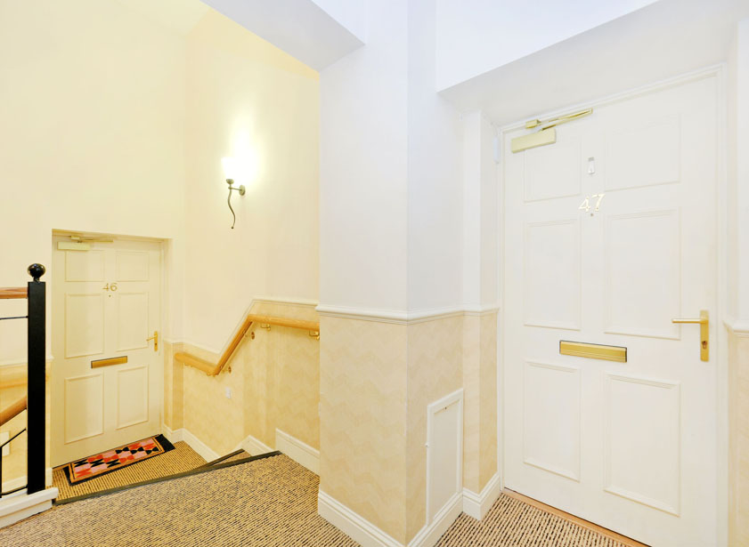 At the Queens Cross roundabout take the exit onto Queens Road. At the roundabout take the third exit onto Forest Road. Turn third left into Morningfield Road and Morningfield Mews is on the right hand side with private access through double wrought iron gates. Parking is available on Morningside Road with pedestrian access into the development via a small wrought iron gate. On entering the development follow the road round to the right no. 47 is situated in the main block.