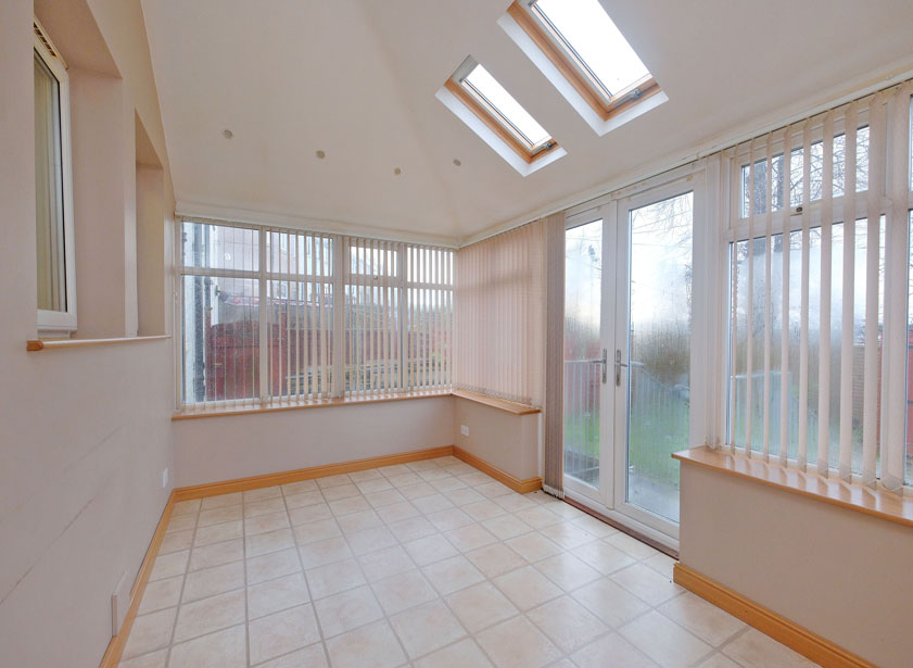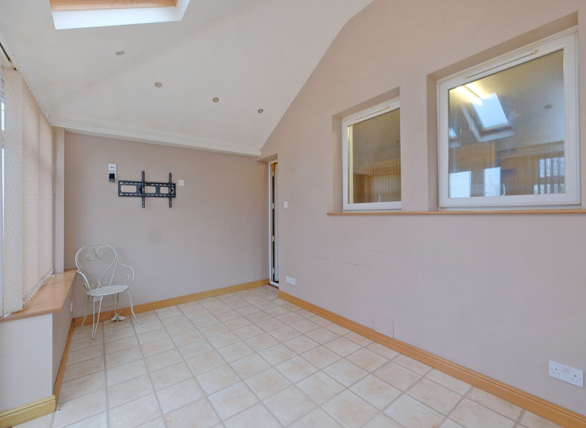 Door to Inner hall which in turn leads to a glazed UPVC door providing access to the sun lounge. A superb addition to the property, this bright room features a vaulted ceiling with twin Velux windows. glazed on two sides Incorporating double French doors to the rear garden.