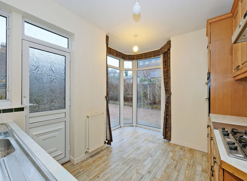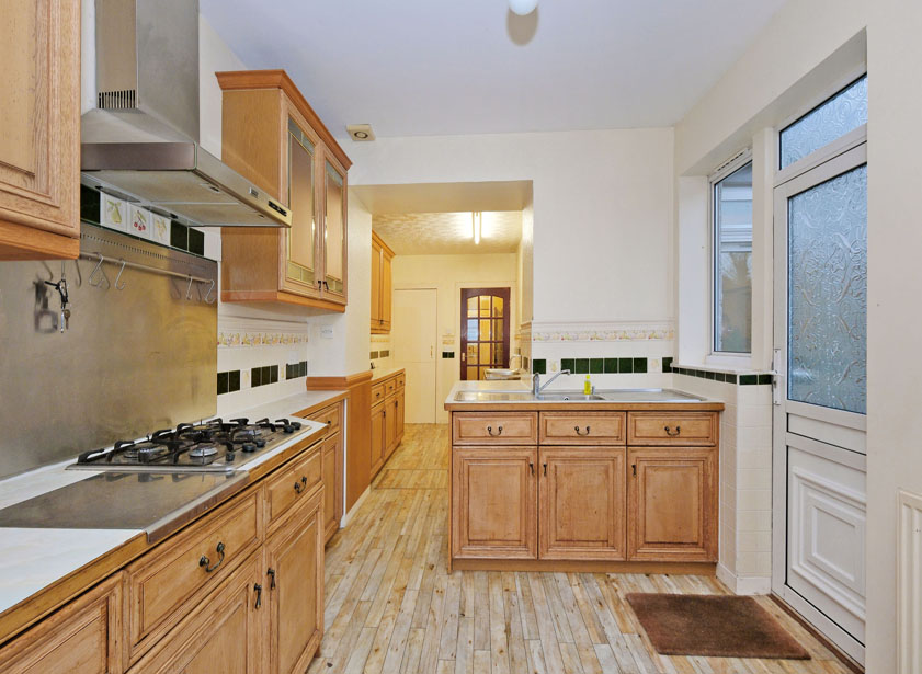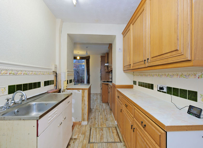 From the hallway, a fifteen pane door leads to the galley style kitchen, fitted with a range of wall and base units, housing a stainless steel sink with mixer tap and drainer. Space for free standing appliances. This area is on semi open plan with the rear extension, which incorporates additional wall and base units and integrated gas hob with extractor hood. Space for a dining table and chairs. Full height windows and part glazed UPVC door to rear garden and driveway.