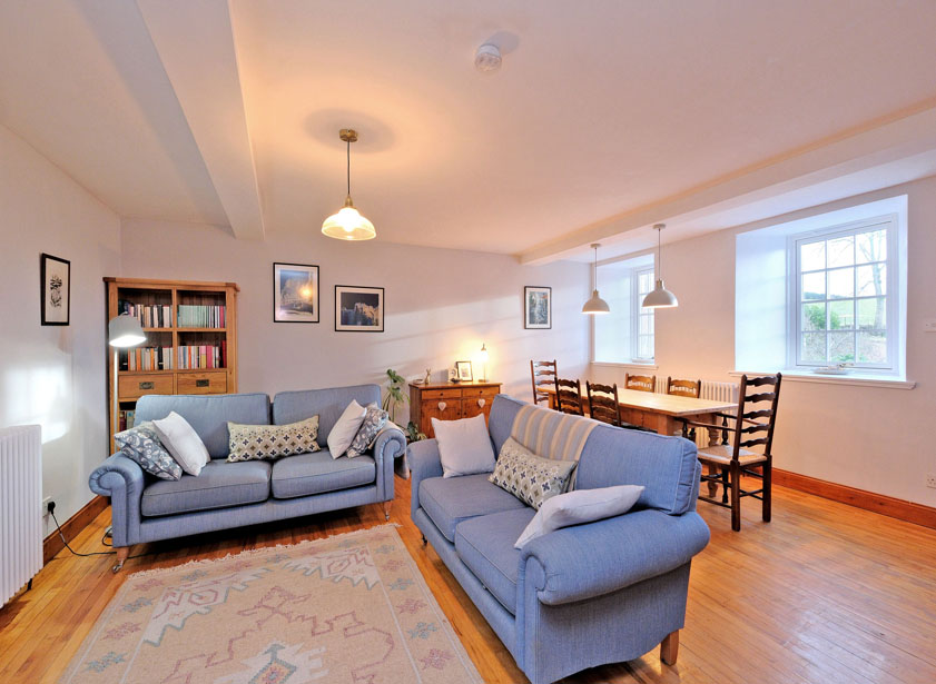 Walking from the main house into the annex, you enter the dining kitchen area of the striking, semi-open plan living area. Flooded with natural light, the living area oozes charm and style. Full height ceilings in the lounge area create a feeling of space, and a door provides access to the outside.