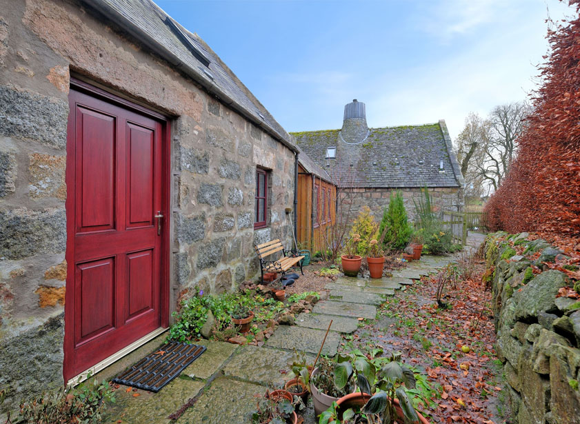 Alternatively, if taking the A980 from the Raemoir direction, arrive in the village of Torphins and turn right at the crossroads, take the B993 all the way to the end of the village, pass the church and continue until reaching the old smiddy. Turn left at the signpost marked “Learney”, continue down the track and the property is on the right-hand side as indicated by our Mackinnons For Sale sign.