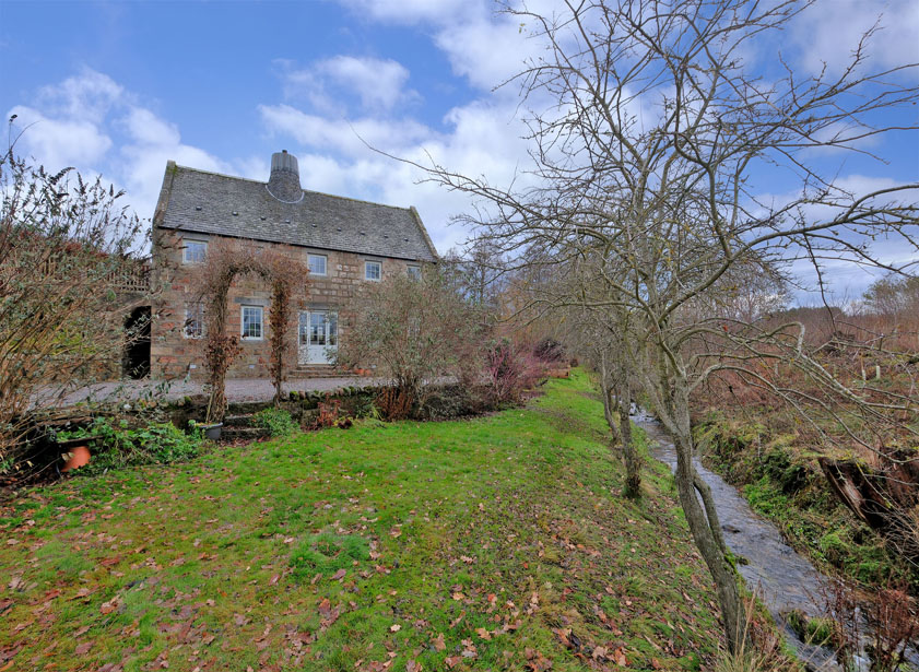 Learney Mill is set in a generous, landscaped plot extending to approximately 0.6 acres including extensive parking, a garage, log store/kennel, lawn, raised beds and a stream.