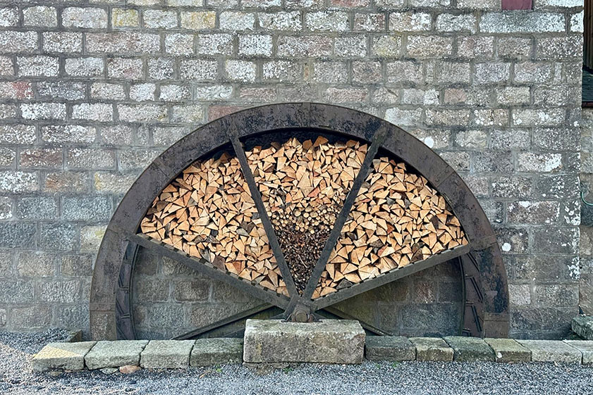 Wooden gates give access to the front of the property which is mainly laid to a stone chip parking area which continues to one side and leads to the garage. The remainder of the front garden is laid to lawn with mature borders containing a variety of shrubs and trees providing shelter and privacy. The front lawn gently slopes down to a stream. To the side of the house is the former mill’s waterwheel, which now serves as a log store and a delightful reminder of the building’s past.