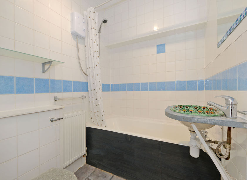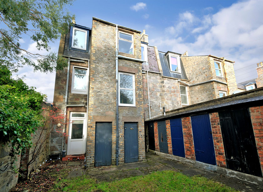 The east flat comprises of an entrance hall providing access to the spacious lounge/ kitchen on open plan, overlooking the front of the property. The kitchen area is fitted with a range of wall and base units, integrated electric hob, oven/grill. Space for free standing washing machine and fridge. A particular feature is the exposed granite wall. A bright double bedroom to the rear provides space for free standing furniture. A centrally set bathroom is fitted with a three piece suite comprising bath with shower over, w/c with concealed cistern and suspended wash hand basin.