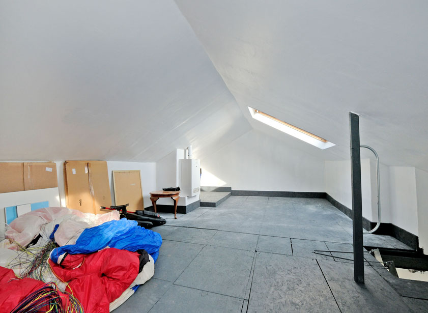 Located on the upper landing a hatch with Ramsay style ladder leads to the shared fully floored and lined attic space storage which is only shared with the other top floor flat, with twin Velux windows allowing a good deal of natural light into the area. Central heating boiler for east flat is located within the attic space.