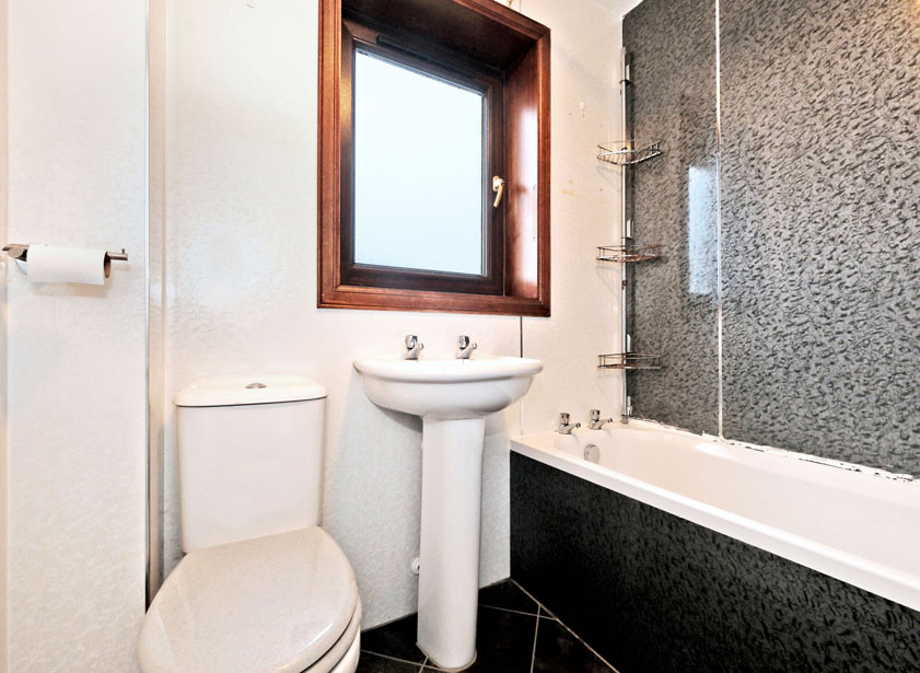 A well-appointed bathroom is fitted with a white three piece suite with MIRA shower over the bath. Fully aqua lined around the bath and shower area. Opaque window to the rear