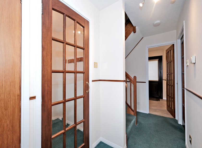 A partially glazed entrance door leads into the welcoming reception hall, which is fully carpeted and of neutral decoration. Within the reception hall there is plentiful fitted storage in the form of an under-stair cupboard and further cupboard housing the electricity and gas meters. A 15 pane Georgian style door leads into a cloakroom which overlooks the front garden via a deep silled window. Carpeted and of neutral décor, there is a range of coat hooks available. A carpeted staircase leads to the accommodation on the first floor.