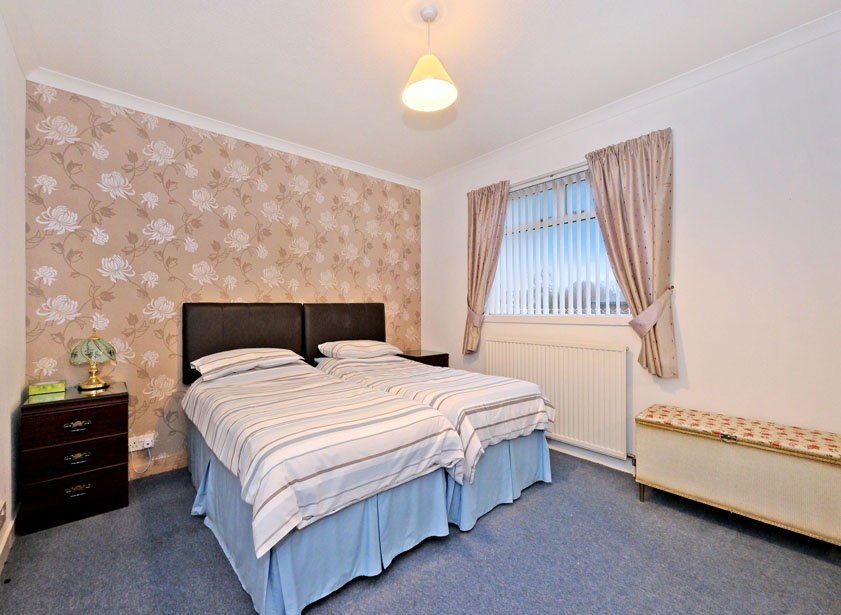 Clochnaben has two double bedrooms, both are tranquil rooms, the principal bedroom is to the side of the house and benefits from fitted storage with mirrored sliding doors. Bedroom two is to the rear, it has space for free standing storage, and is served by a two-piece en-suite WC cloakroom with extractor fan and wall mounted charging point.