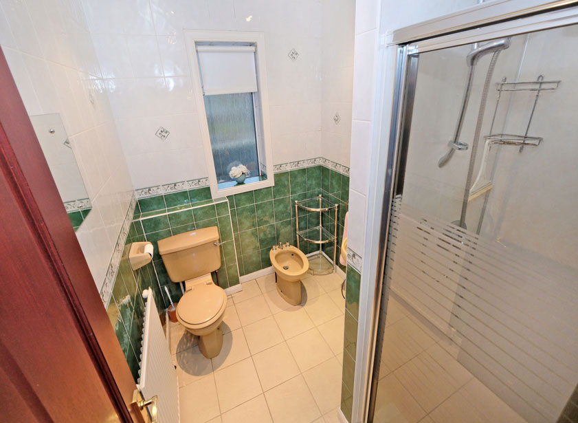 Completing the ground floor is the fully tiled four-piece shower room comprising a shower cubicle, wash hand basin, bidet and WC. A window and an extractor fan provide ventilation and there is a wall mounted light/charging point above the sink.