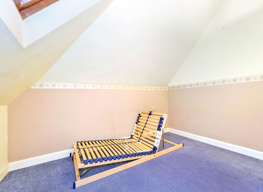 A good sized single bedroom situated to the rear features a large Velux window and provides space for free standing furniture.