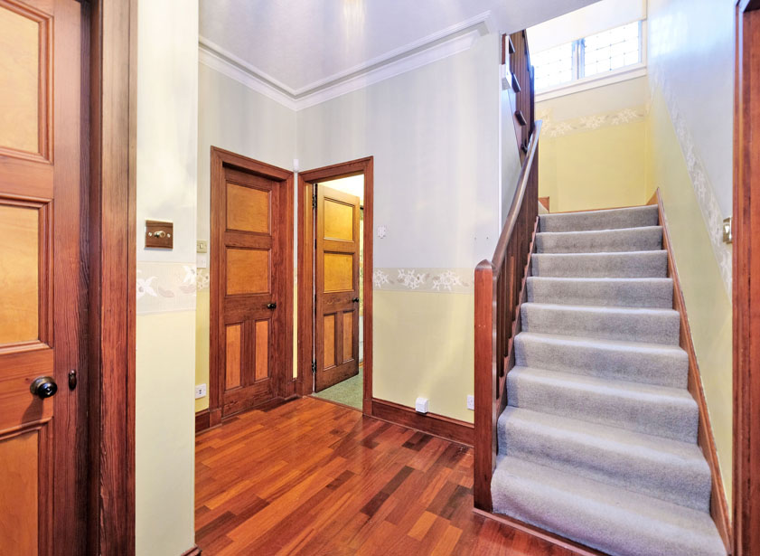 A carpeted staircase with original wooden balustrade and banister leads to the upper floor and remaining accommodation. Window on the mid stairwell allows a good deal of natural light into the area.