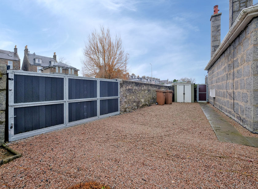Head west on Great Western Road and continue through the traffic lights at Anderson Drive. Turn first left onto Hammerfield Avenue and first left onto the vehicular access lane, off road parking for 167 South Anderson Drive is located on the right hand side before reaching the South Anderson Drive junction.