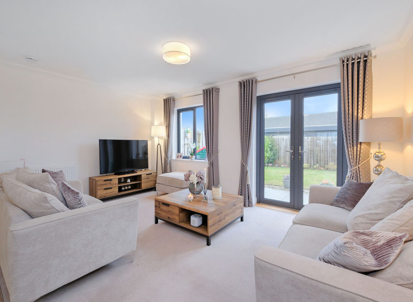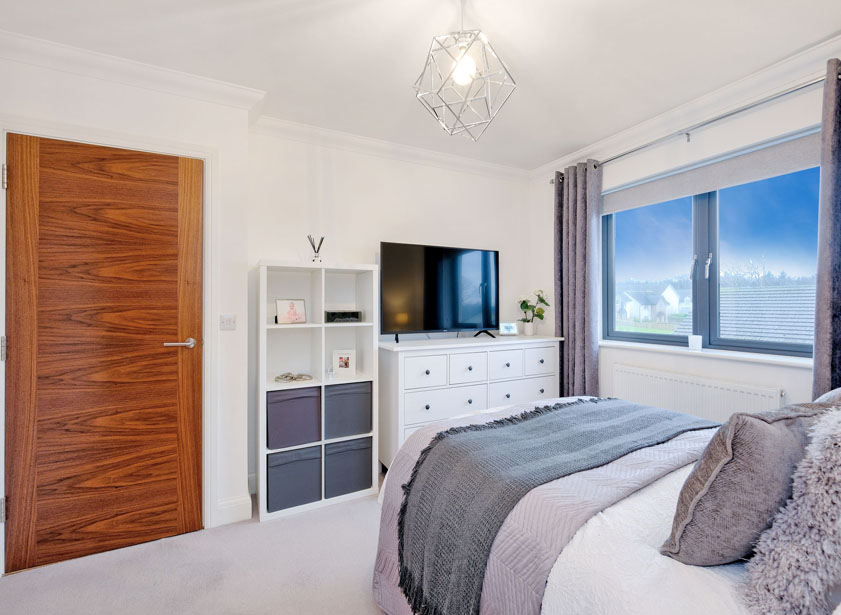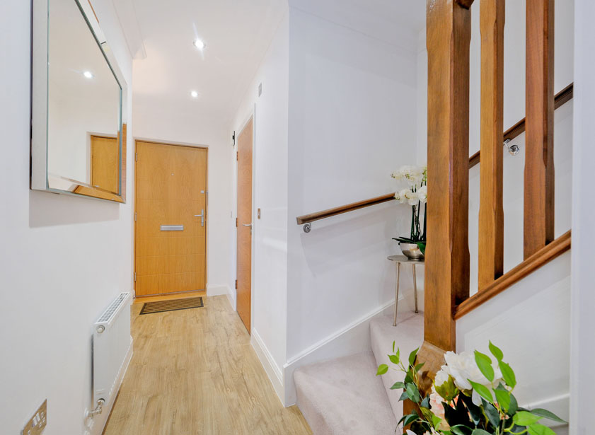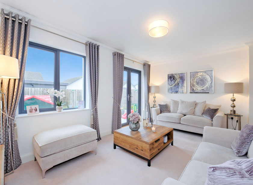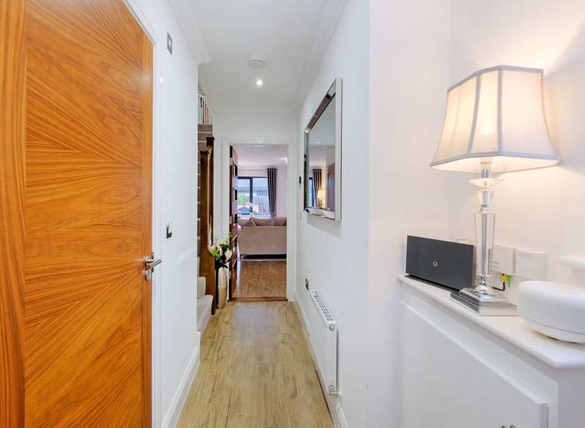 Entered via composite door, this welcoming reception hall provides access to all ground floor accommodation. A window overlooking the side driveway allows ample natural light into the area. A fitted cupboard houses the circuit breaker and meter. Neutral décor is complimented by attractive wood doors and wood effect Amtico flooring.