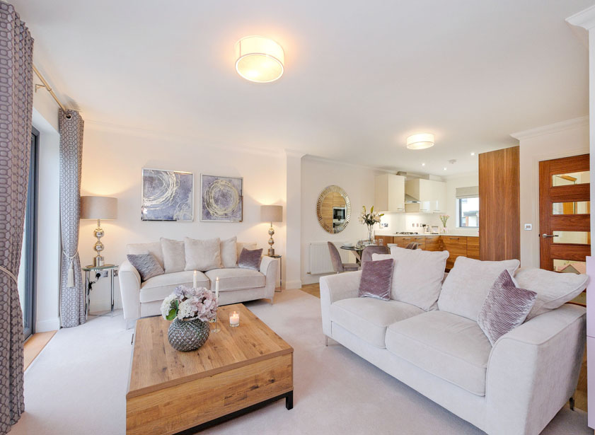 Boasting a superb open plan layout of lounge/dining area and kitchen featuring double ‘French’ doors which open out to the fully enclosed rear garden and further window to the rear ensuring a good deal of natural light. A deep built-in storage cupboard provides excellent storage facilities.