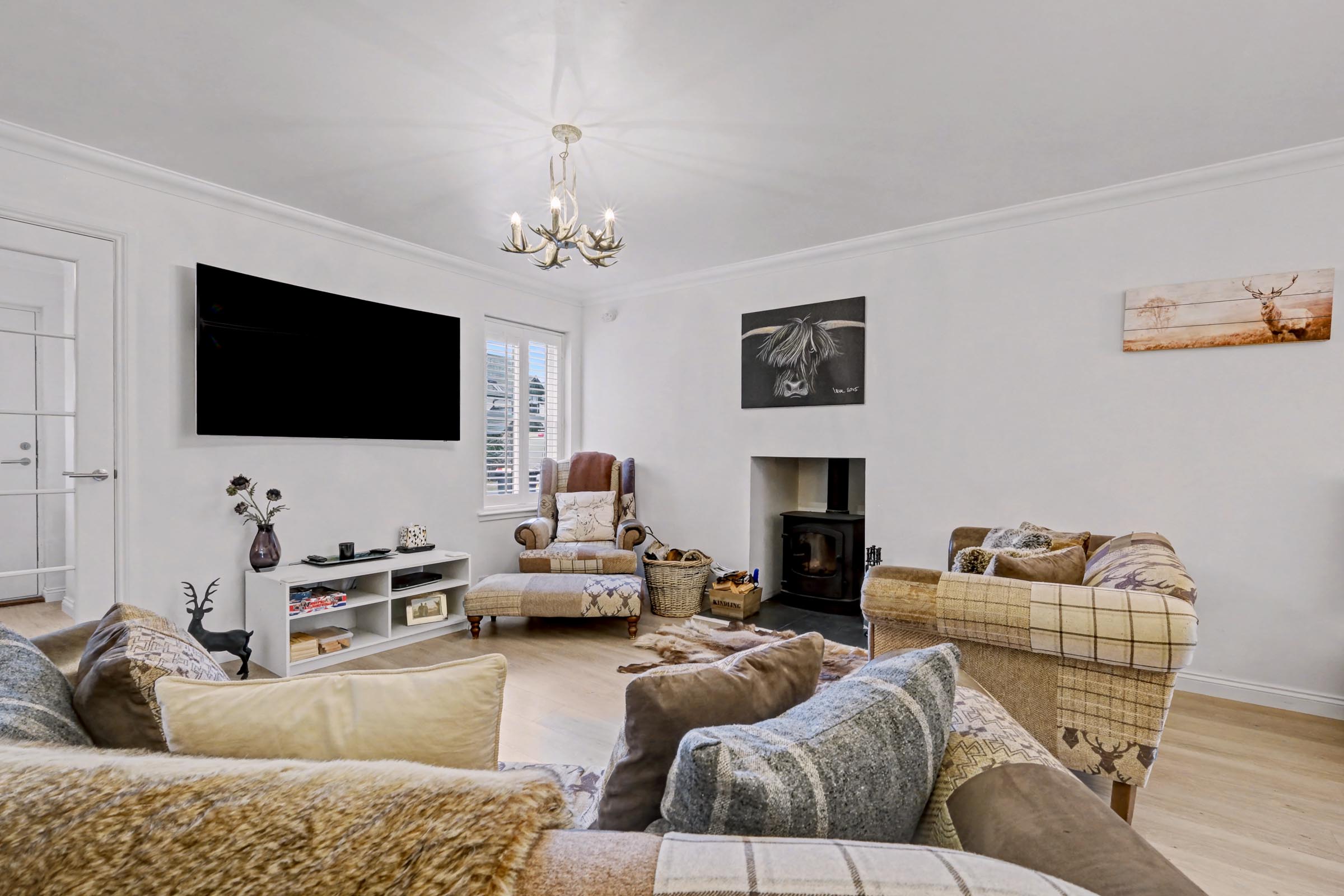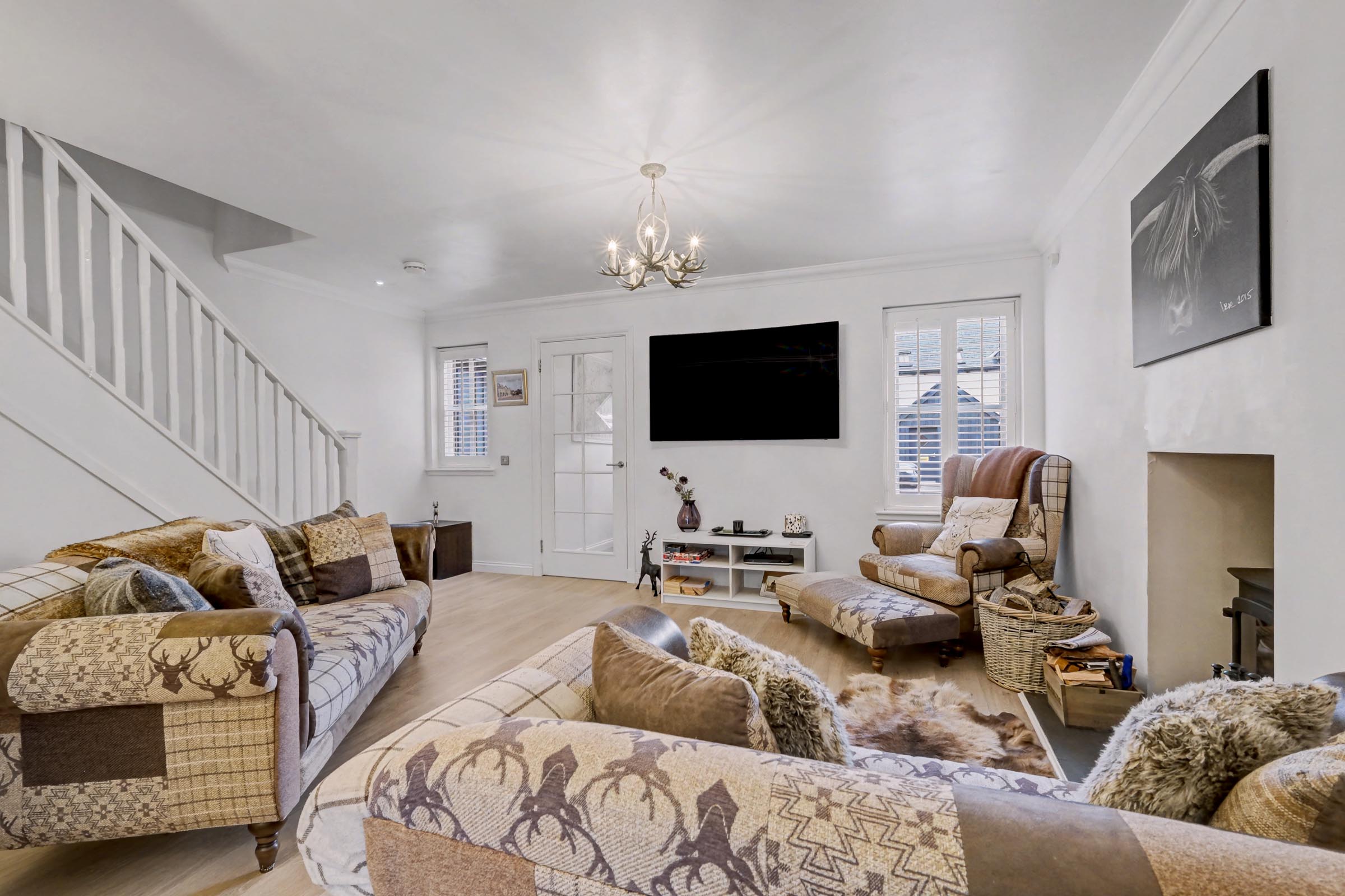Travelling on the A93 from Ballater to Braemar, enter the village and continue along the A93 passing St Margaret’s Church on the left. Take first right onto Canmore Road and follow the road round to number 10 which is located on the right-hand side as indicated by our Mackinnons For Sale sign.